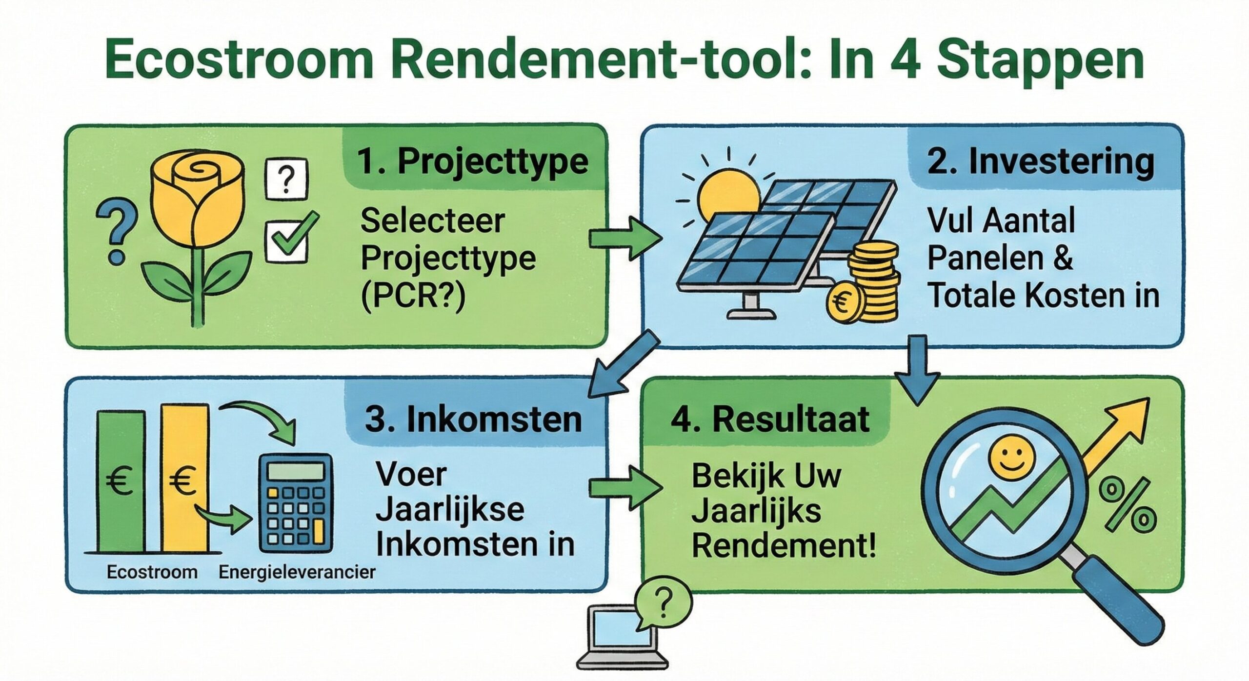 Als lid van Ecostroom draagt u direct bij aan de lokale energietransitie. Maar wat levert uw deelname onderaan de streep eigenlijk op? Om u te helpen bij het in kaart brengen van het rendement, hebben wij een handige Excel-rekentool ontwikkeld. In dit artikel leggen we kort uit hoe deze tool in te vullen.